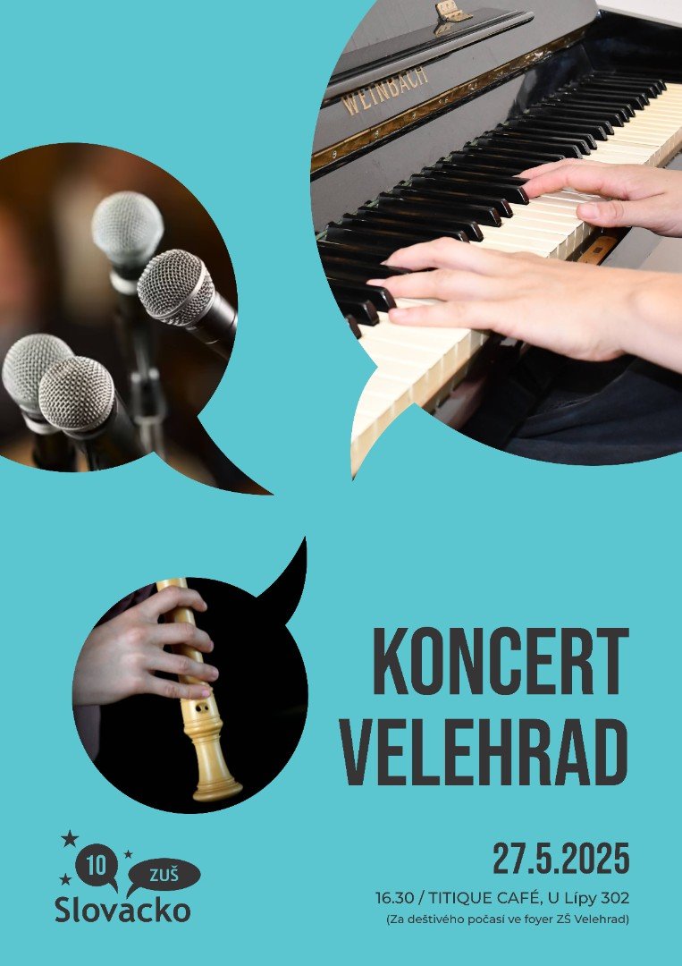 V případě deštivého počasí koncert přesuneme do foyer ZŠ Velehrad.