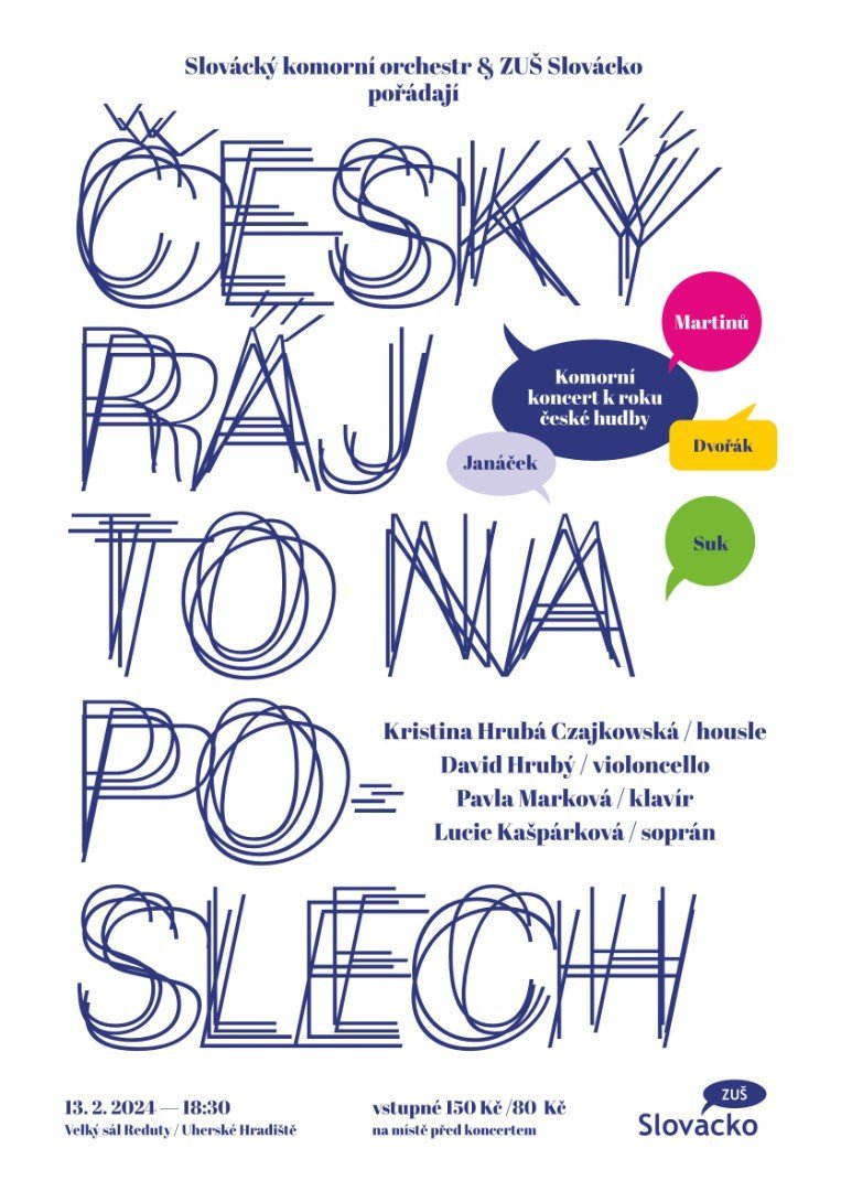 Komorní koncert k roku české hudby s podtitulem “Český ráj to na poslech” přináší skvostná komorní díla velkých českých skladatelů a dává vyniknout jejich hudební rozmanitosti v pestrosti nástrojových kombinací. Zádumčivost melodií v kontrastu s nespoutaným lidovým entusiasmem Dvořákových Dumek pro klavírní trio, podmanivost Sukovy Písně lásky či hravost písní Bohuslava Martinů, rezonují v českém posluchači o to více, že česká hudební tradice je v každém z nás neodmyslitelně hluboko zakořeněna.