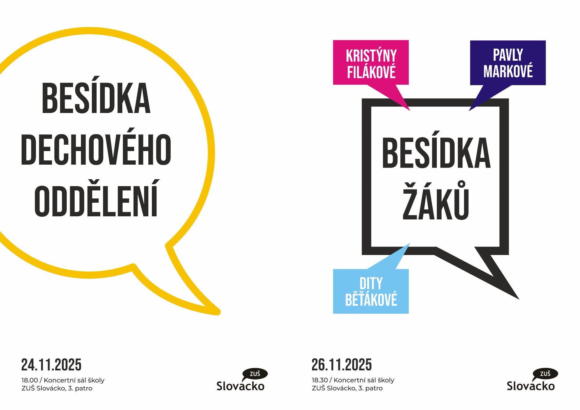 V pondělí 24. 11. v 18:00 proběhne v Koncertním sále školy Besídka dechového oddělení, kde vystoupí žáci Natalie Bazelové, Michaely Kamenčákové a Renaty Rakové.