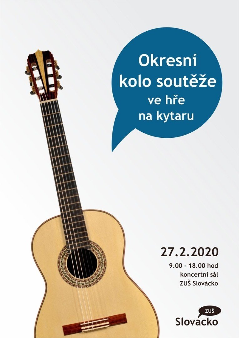 Ve čtvrtek 27. února proběhne na naší škole Okresní kolo soutěže ZUŠ ve hře na kytaru.