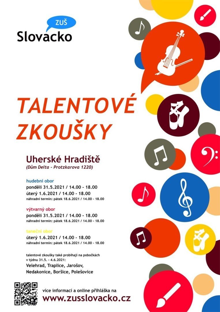 Talentovky budou probíhat i na pobočkách, pokud by vám nevyhovoval čas, přihlaste se k přijímacím zkouškám do Uherského Hradiště nebo nás kontaktujte a domluvte si individuální termín.