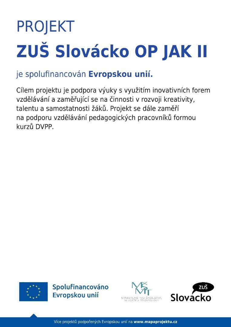 Ve školním roce 2024/25 a v následujícím realizuje naše škola projekt ZUŠ Slovácko OP JAK II.