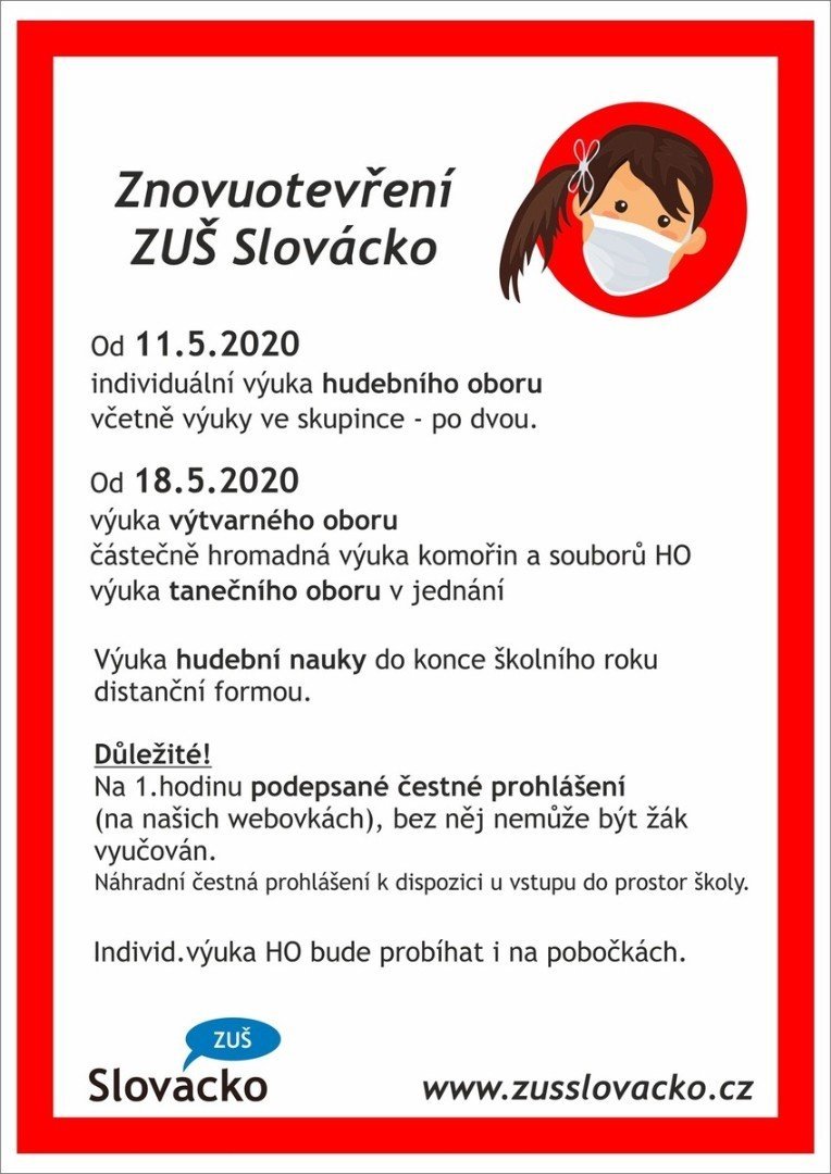 zde jsou žhavé informace k znovuotevření ZUŠ Slovácko.